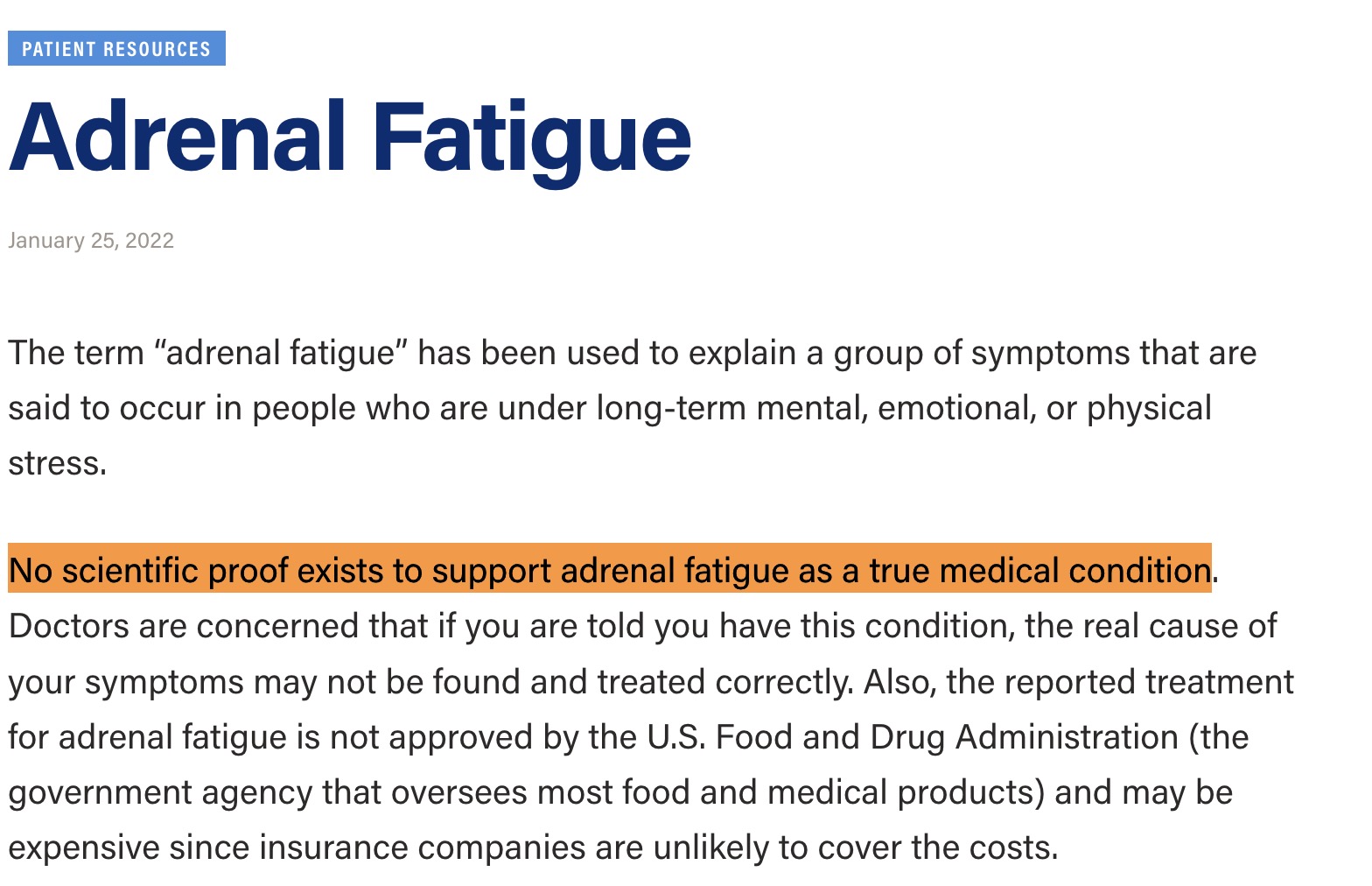 Let me be direct: "adrenal fatigue" isn't a real medical condition. The Endocrine Society, the world's leading organization of hormone specialists, states clearly that "no scientific proof exists to support adrenal fatigue as a true medical condition."